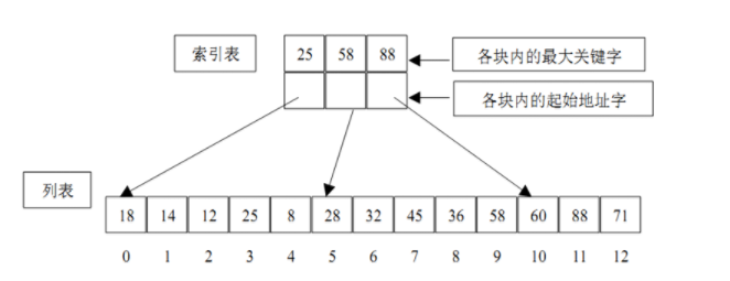 分块查找又称为索引顺序查找,它是顺序查找的一种改进方法。也就是将一组数据元素“按块有序”划分为m块(每一块中的数据元素不必有序,但块与块之间必须“按块有序”)。
