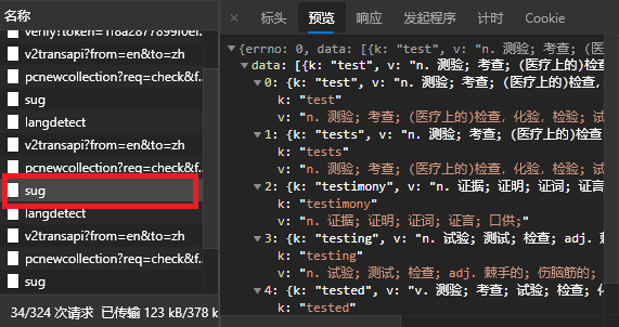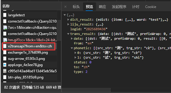 除此之外,我们还能找到一个请求,这个应该才是真正的翻译结果: