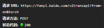 请求链接为https://fanyi.baidu.com/v2transapi?from=en&to=zh ,请求方式为POST。