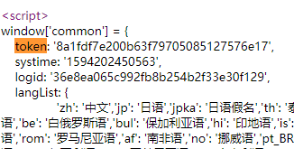 先从网页源代码入手,我们发现token居然就写在网页源代码里,且与刚才请求中的值一致。