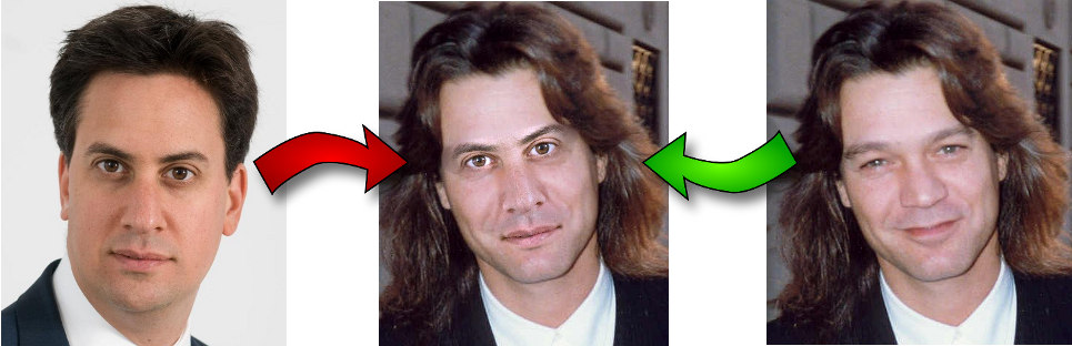 如果太小,第一个图像的面部特征将显示在第二个图像中;反之过大,内核之外区域像素被覆盖,并发生变色。这里的内核用了一个0.6x的瞳孔距离,COLOUR_CORRECT_BLUR_FRAC可自行调整。