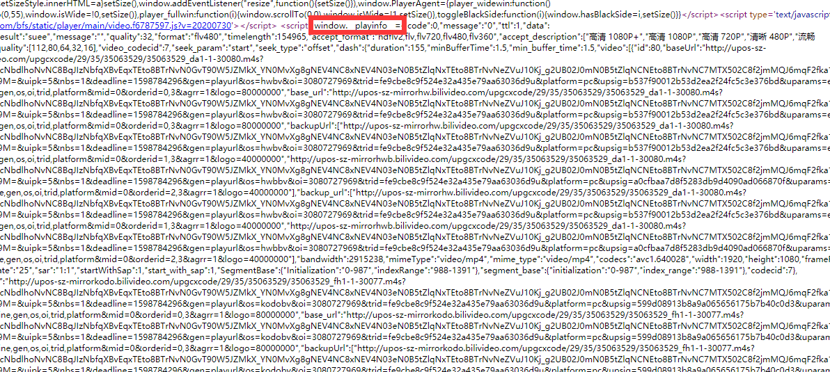 查看源代码,发现__playinfo__内的信息很多,疑似关键信息,先存下来。